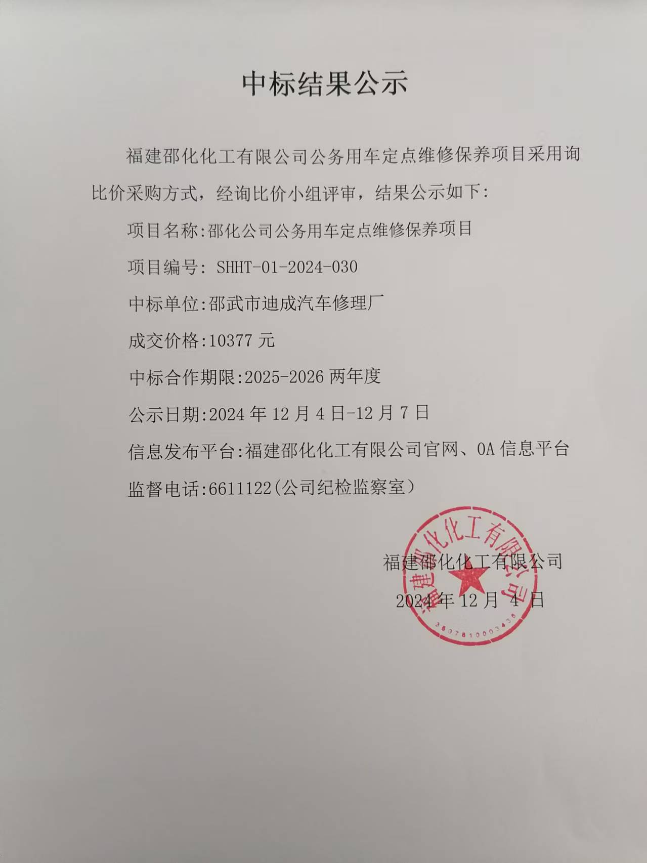 中標(biāo)結(jié)果公示